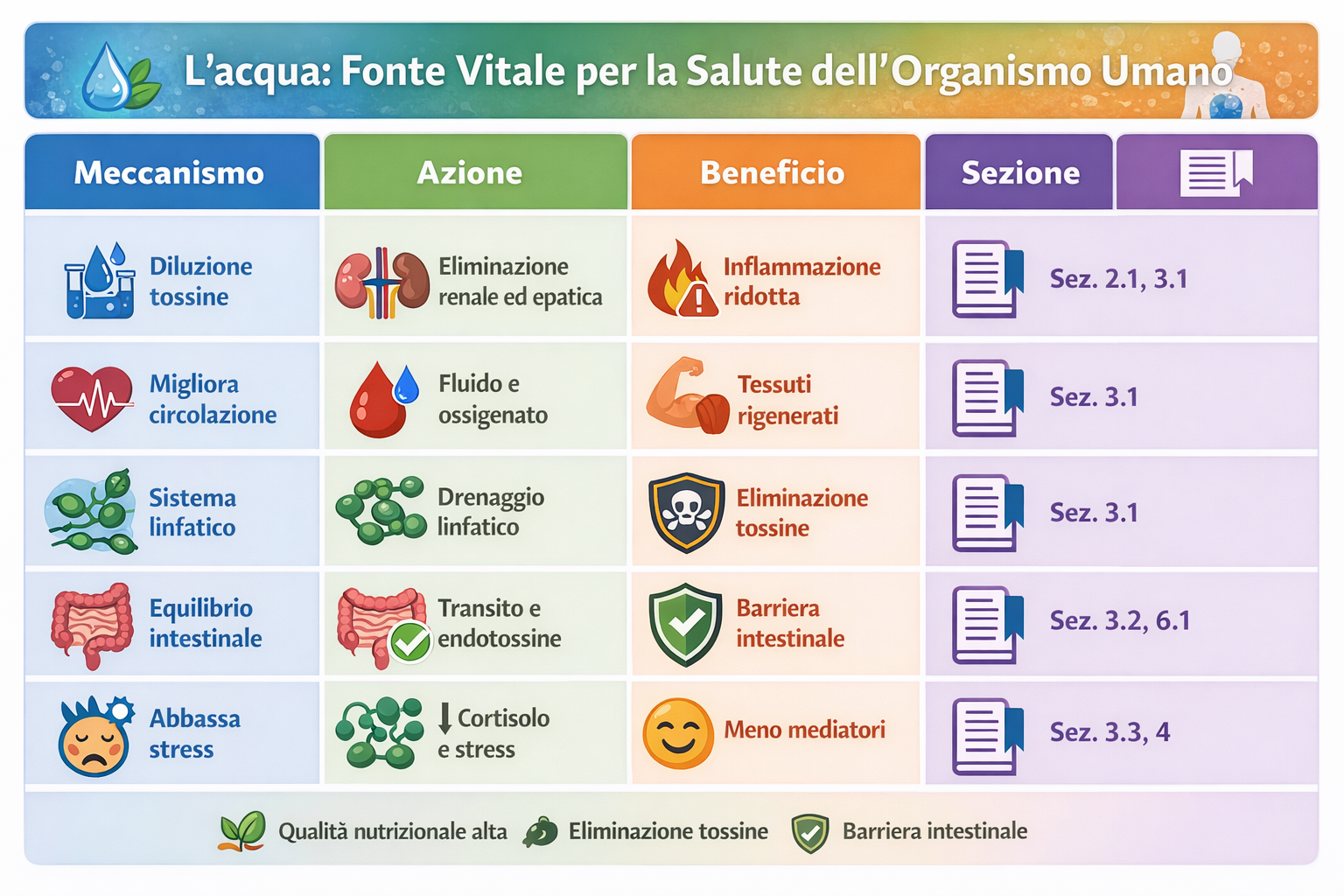 Questi meccanismi sono supportati da studi di fisiologia, microbiologia e ricerche emergenti sull’effetto dell’idratazione sulla modulazione immunitaria.